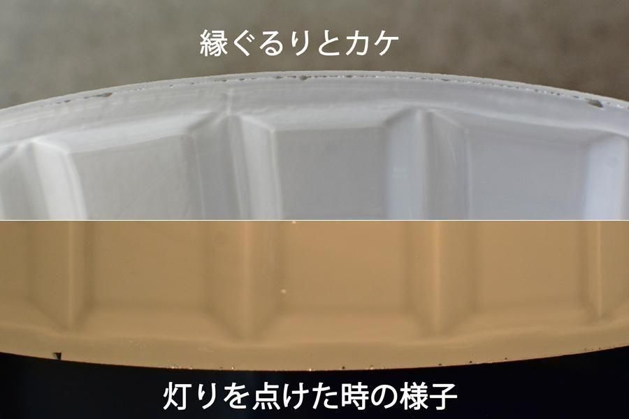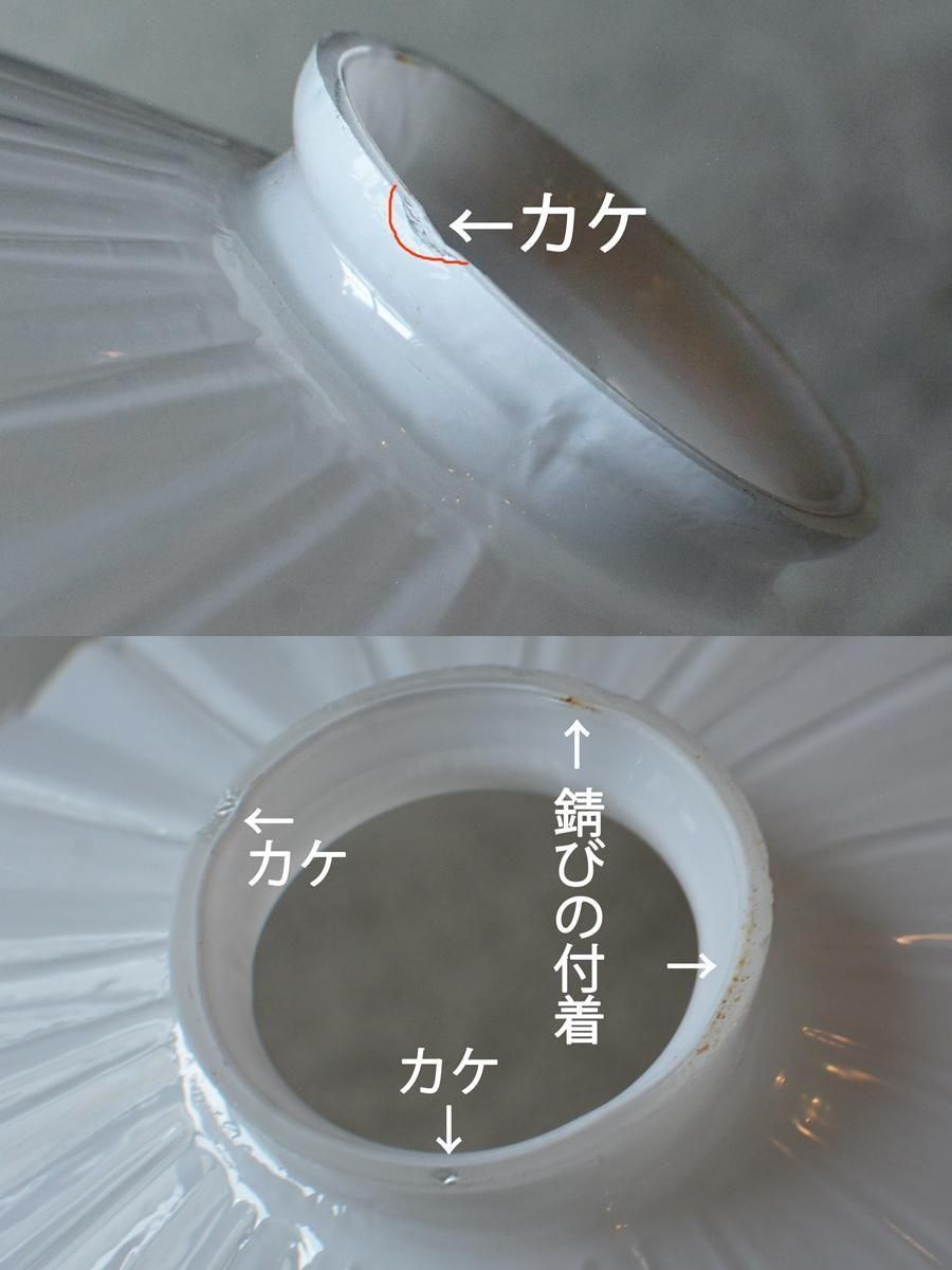 ※キャッチに隠れる部分と縁にぐるりとカケが見られる他、ガラスのシワによる線が見られます。