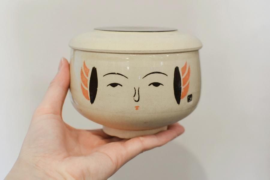 かつて「こけし弁当」という駅弁が東北地方の駅で販売されていたようで、これはその容器です。陶器製。