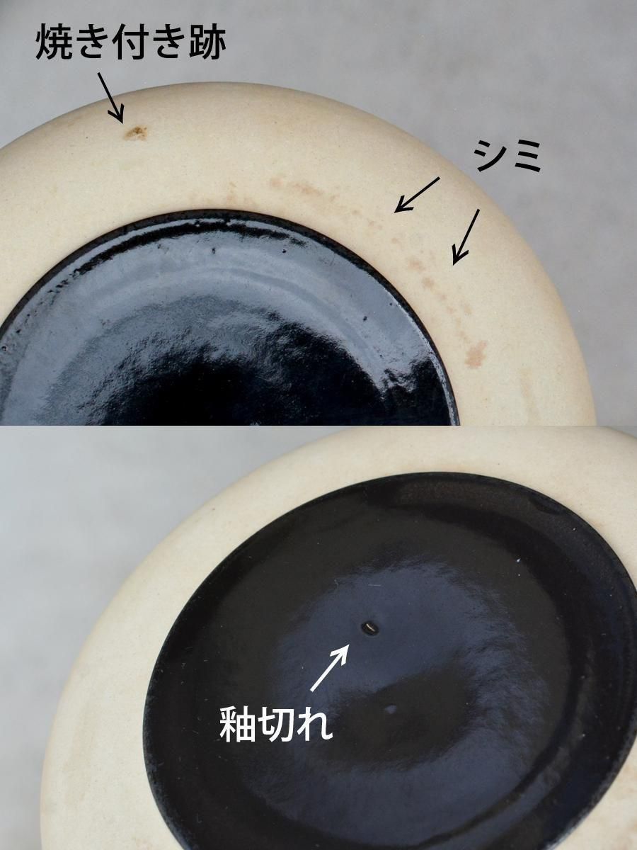 ※制作時に窯の中で付着した灰や微細な凹凸、砂の焼き付き跡、釉切れや釉薬の垂れ、シミやシワなどが見受けられます。