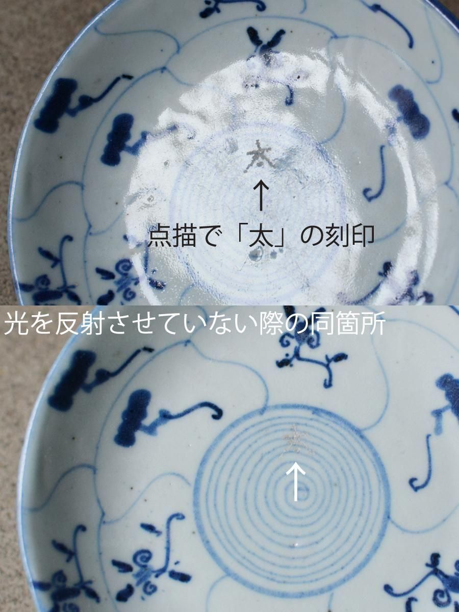 ※見込みの中央部分に、手描きの点描で「太」という文字が刻印されています。