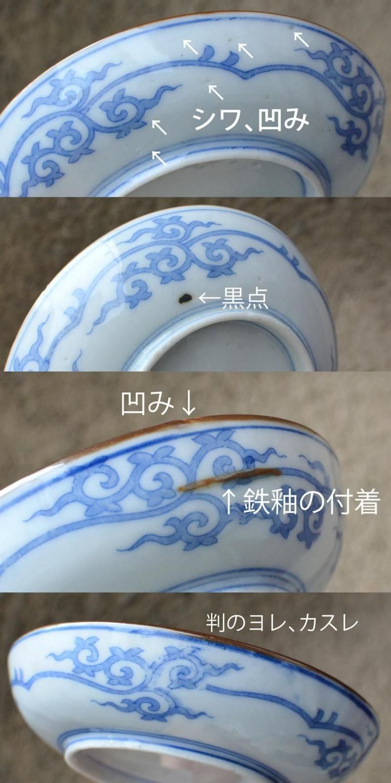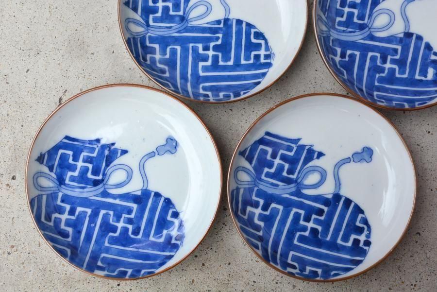 印判ですが、染付部分の濃淡でそれぞれ個性が出ているのも面白いです。