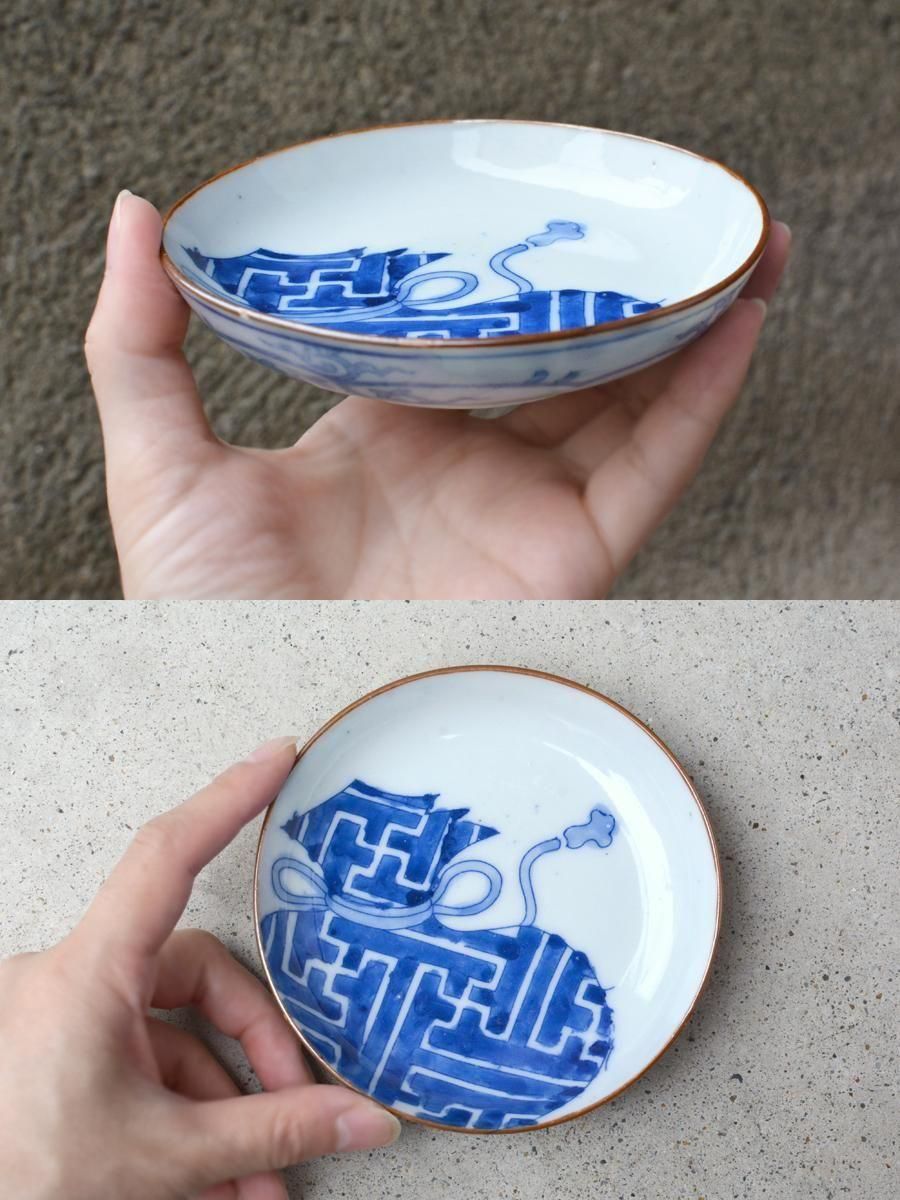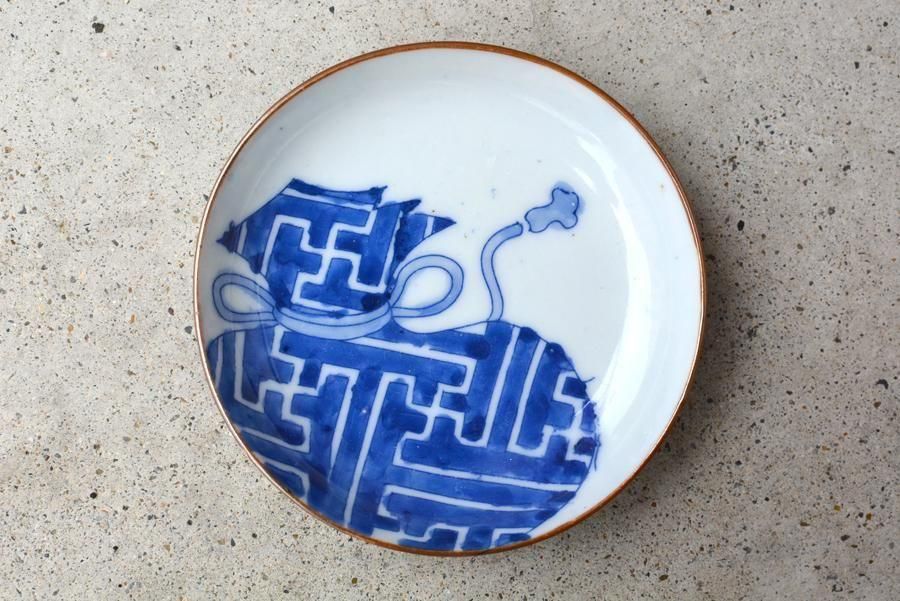 瀬戸 染付印判小皿 寶袋