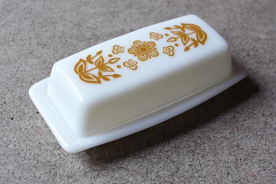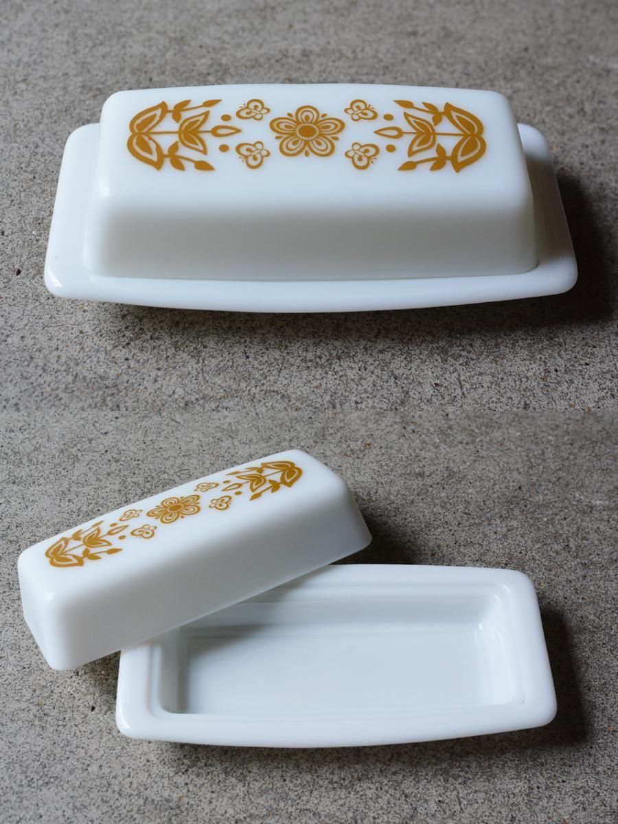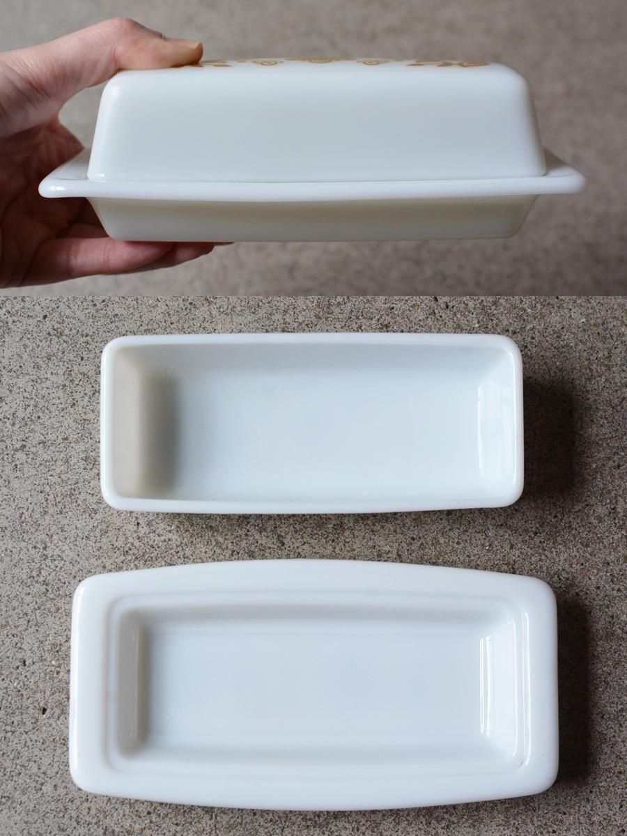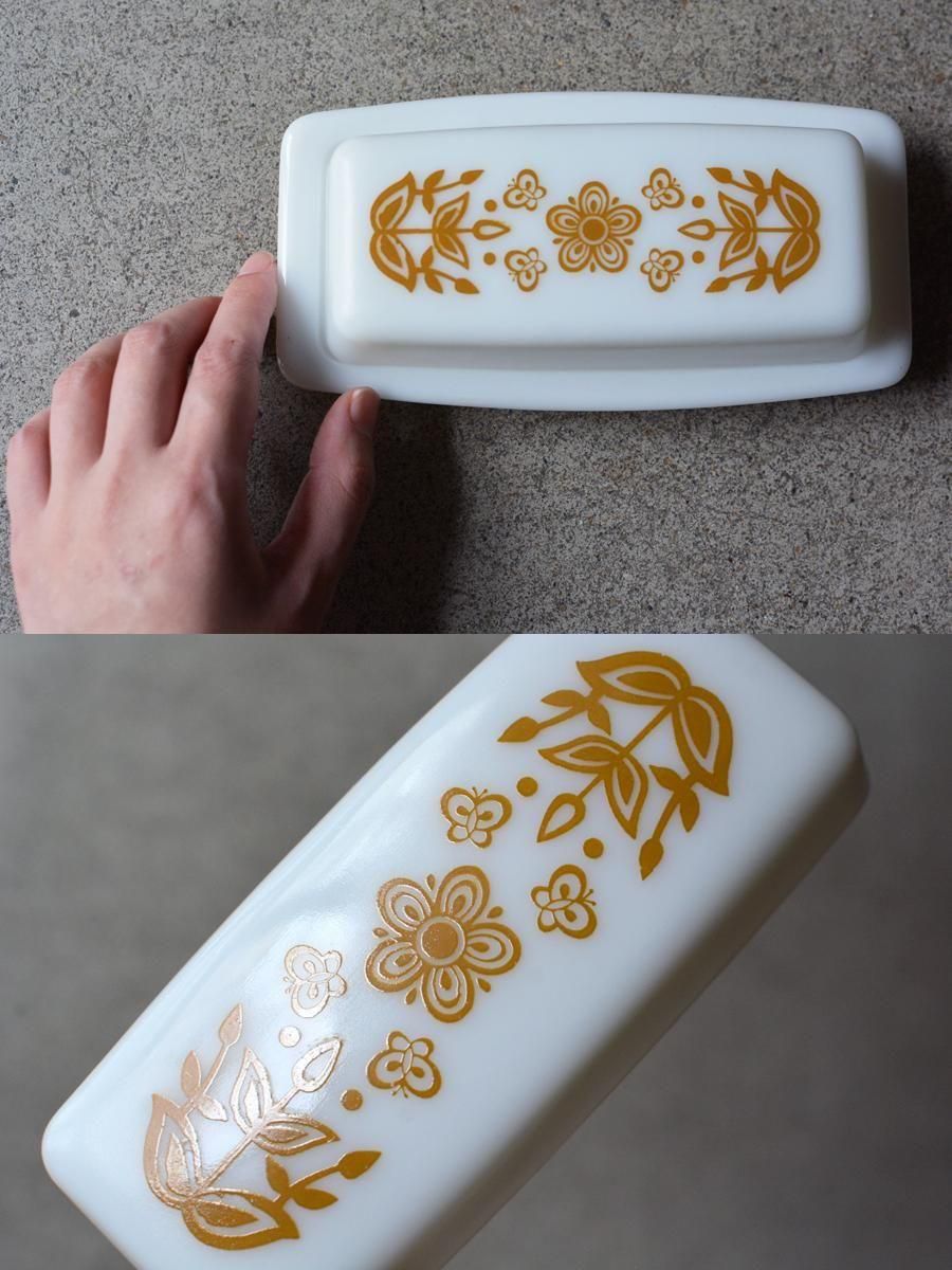 アメリカの老舗耐熱ガラスブランド PYREX(パイレックス)製のバターディッシュです。