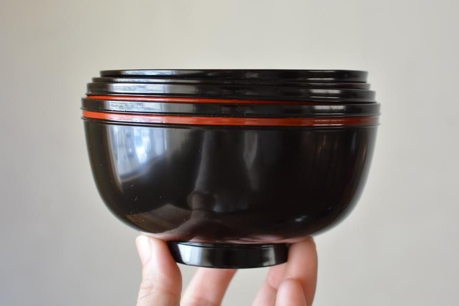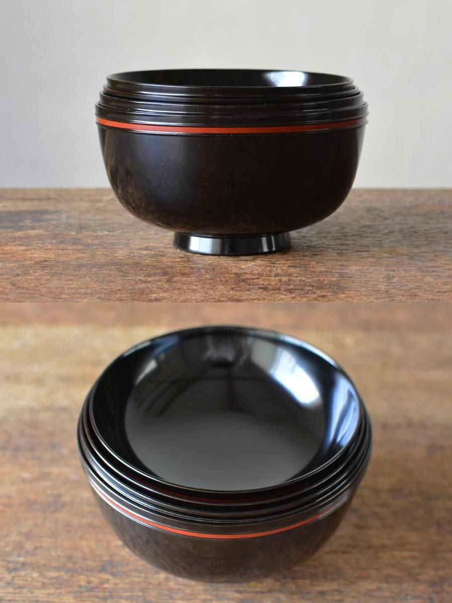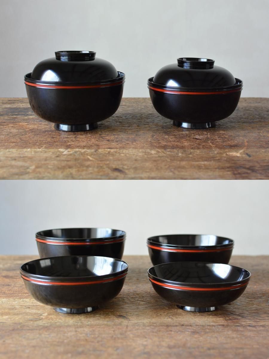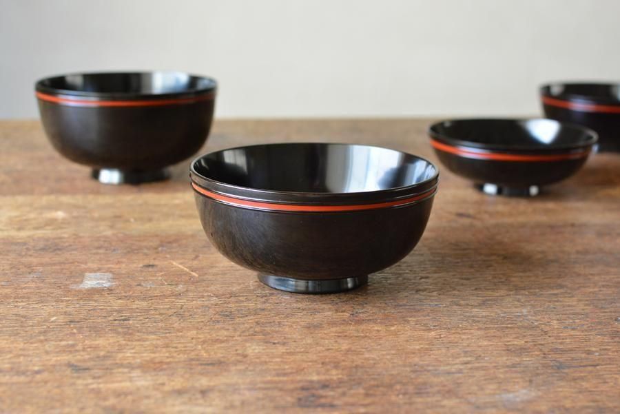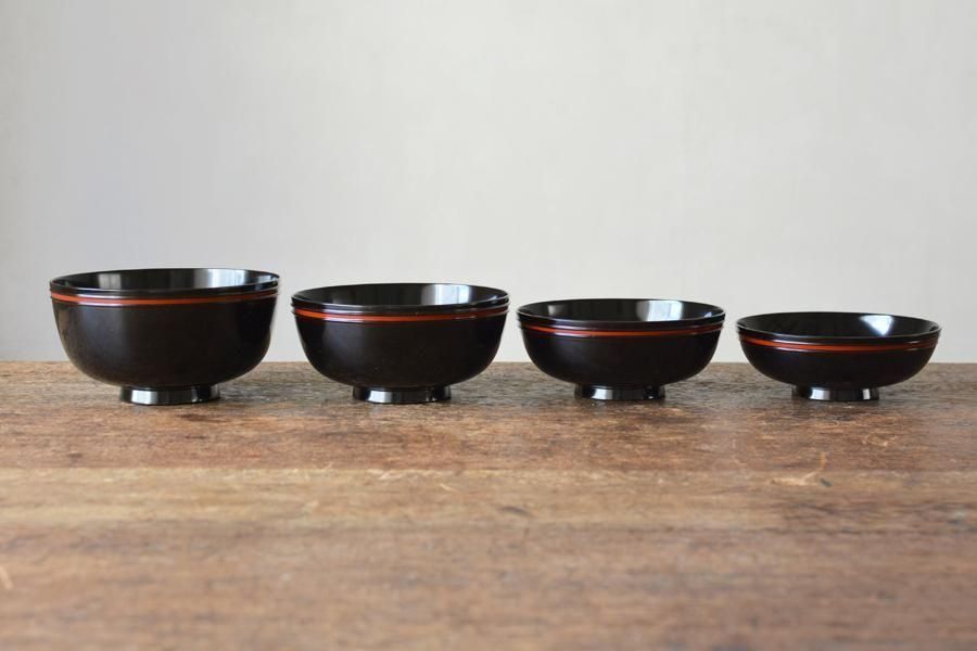 黒漆に朱のラインの入ったシンプルな四つ椀