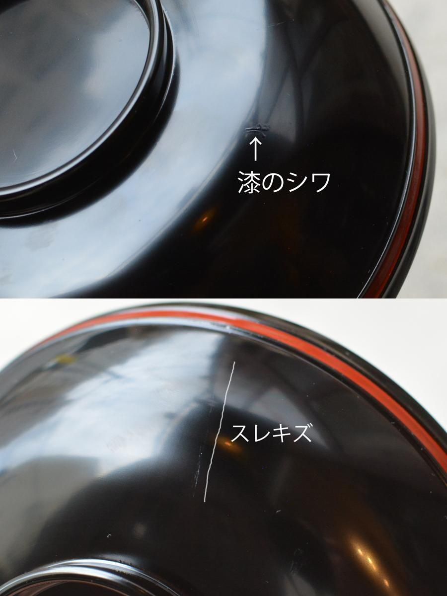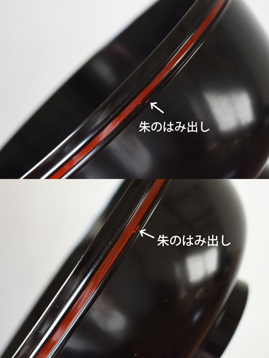 ※朱漆のはみ出し、漆のシワ、スレが見られます。