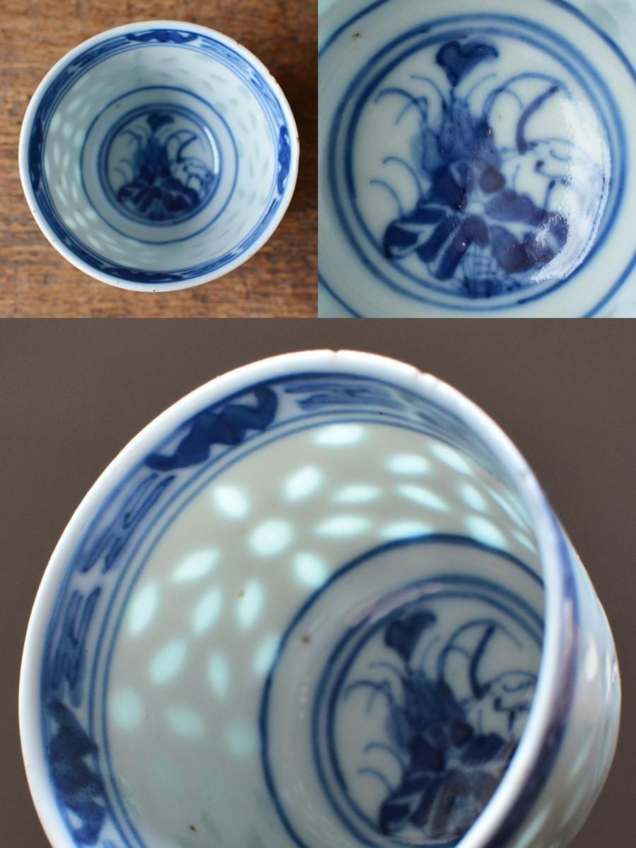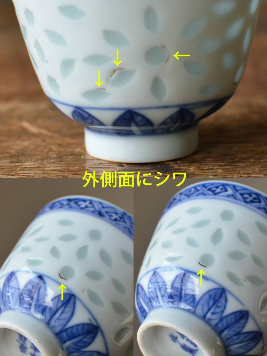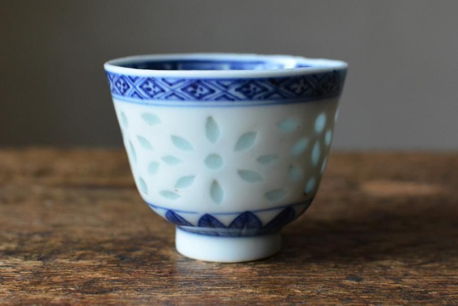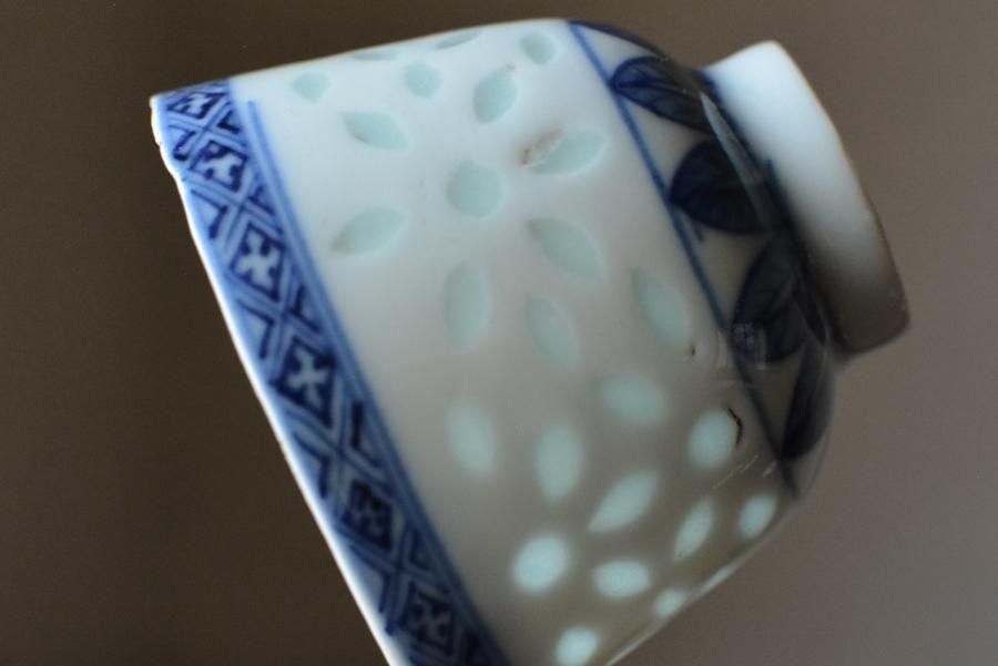こちらは「蛍手(ほたるで)」と呼ばれる技法で、透かし彫りにした後、透明釉薬をその小穴に充填して焼成することでこのような意匠になります。