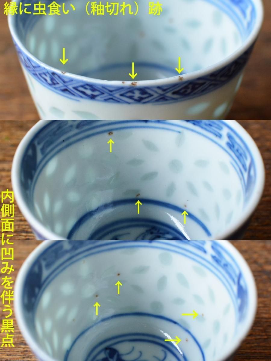 ※制作時にできた釉切れによるシワや窯の中で付着した灰や鉄分が黒く焼き付いている黒点、縁に虫食い(釉薬の剥がれ・途切れ跡)などが見受けられます。