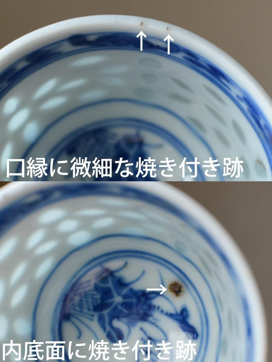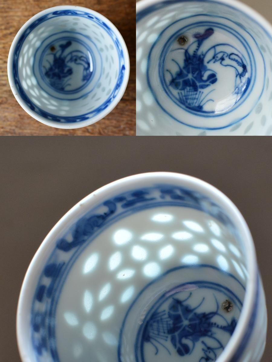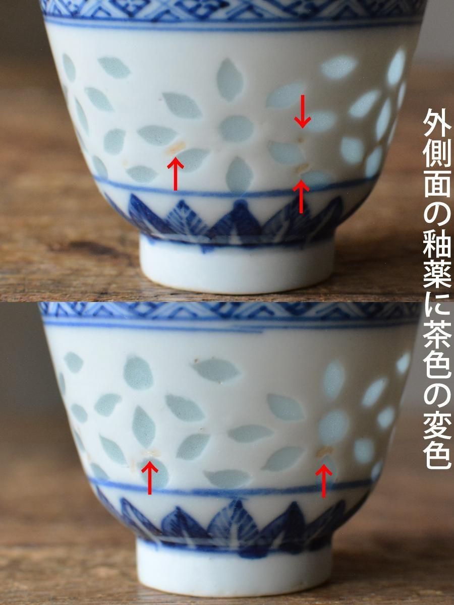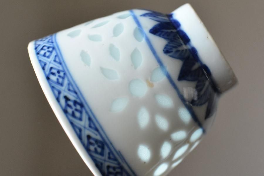 こちらは「蛍手(ほたるで)」と呼ばれる技法で、透かし彫りにした後、透明釉薬をその小穴に充填して焼成することでこのような意匠になります。