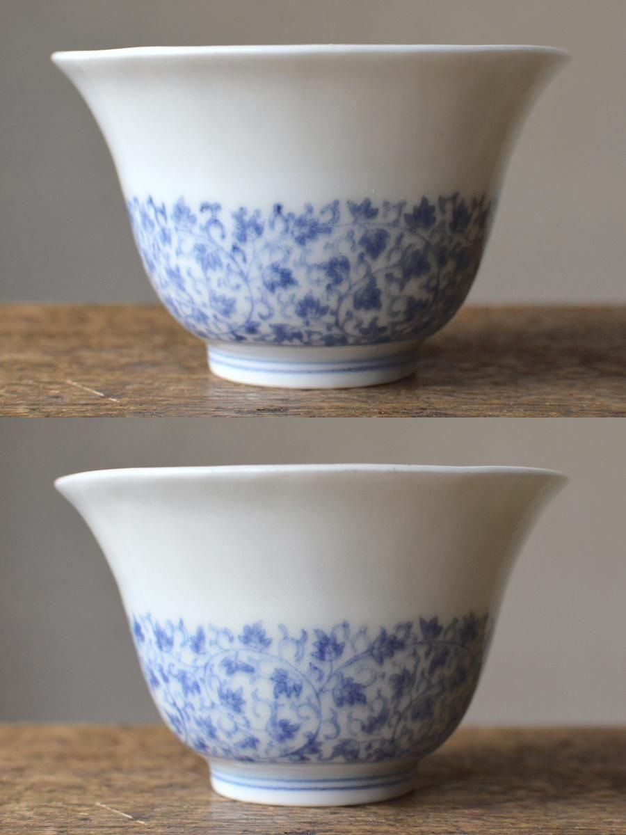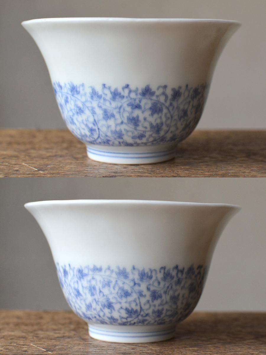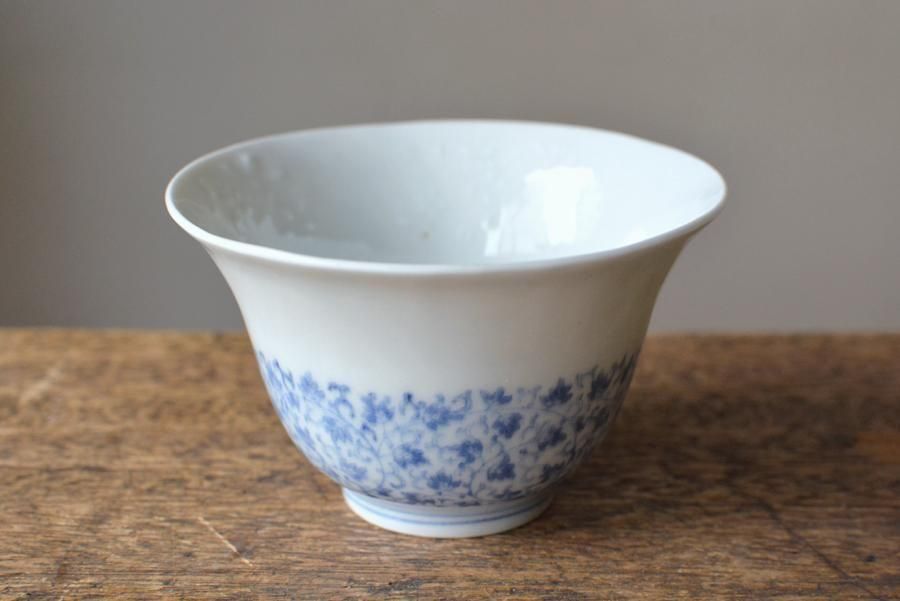 外側は繊細なタッチの唐草が腰部分にのみ描かれており