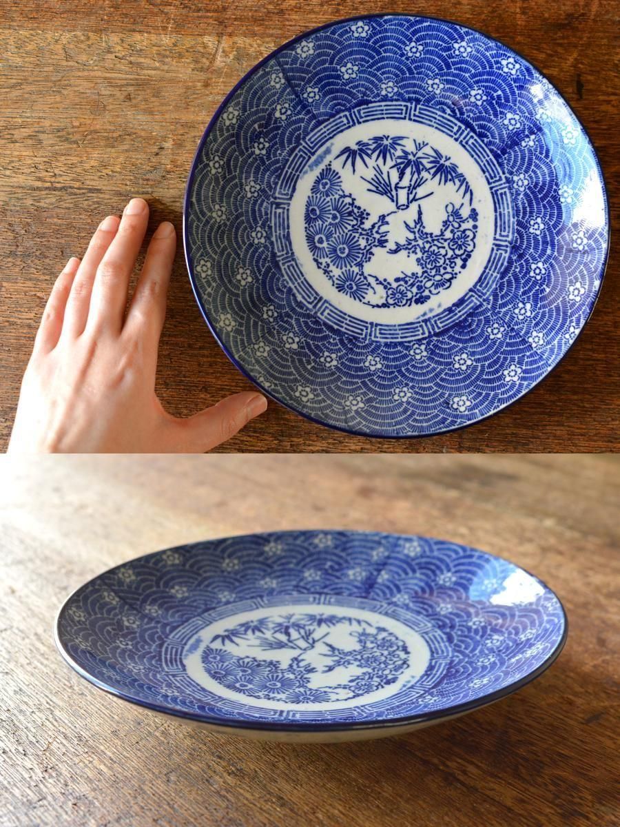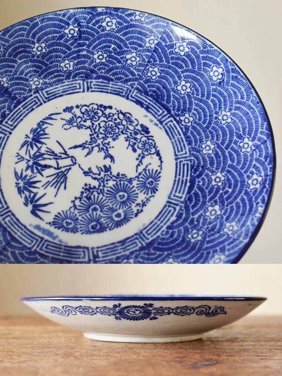 型紙刷り印判 中皿 青海波梅に松竹梅