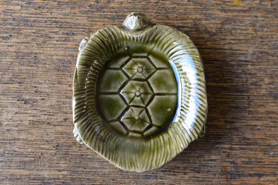 不老長寿の象徴、蓑亀を模した瀬戸焼の豆皿。