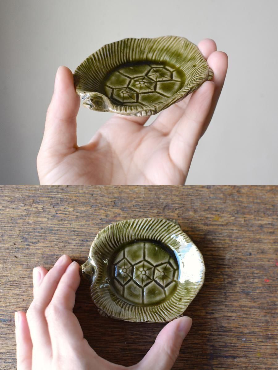 瀬戸焼織部釉 豆皿 蓑亀【B】