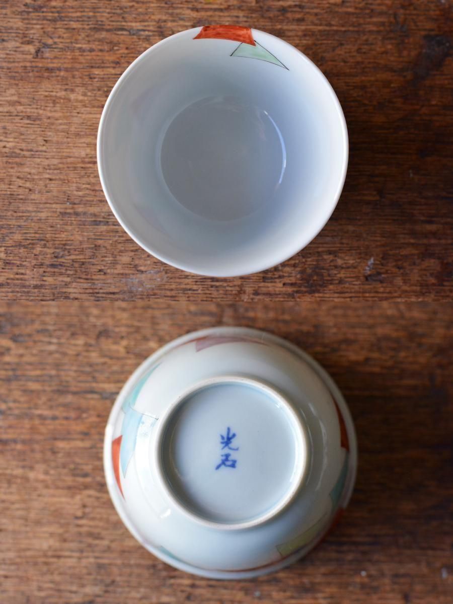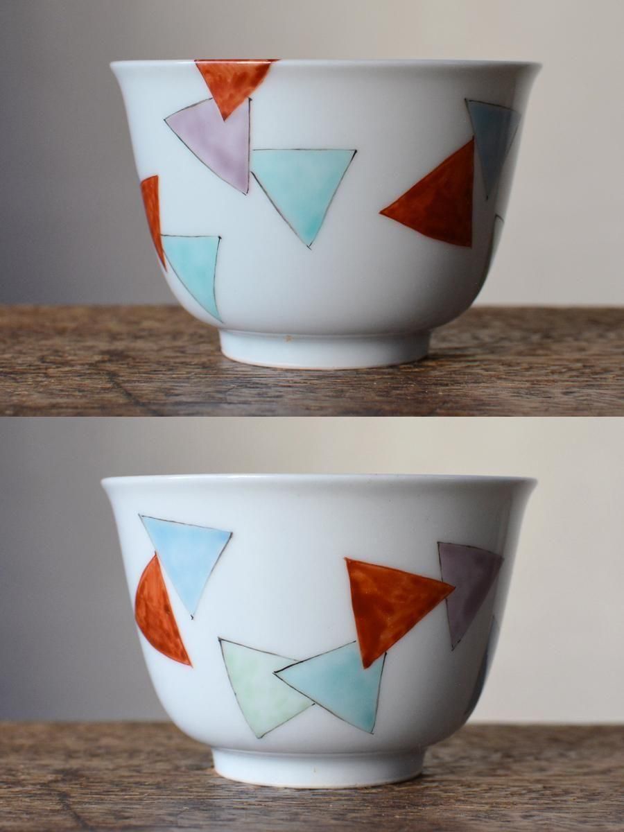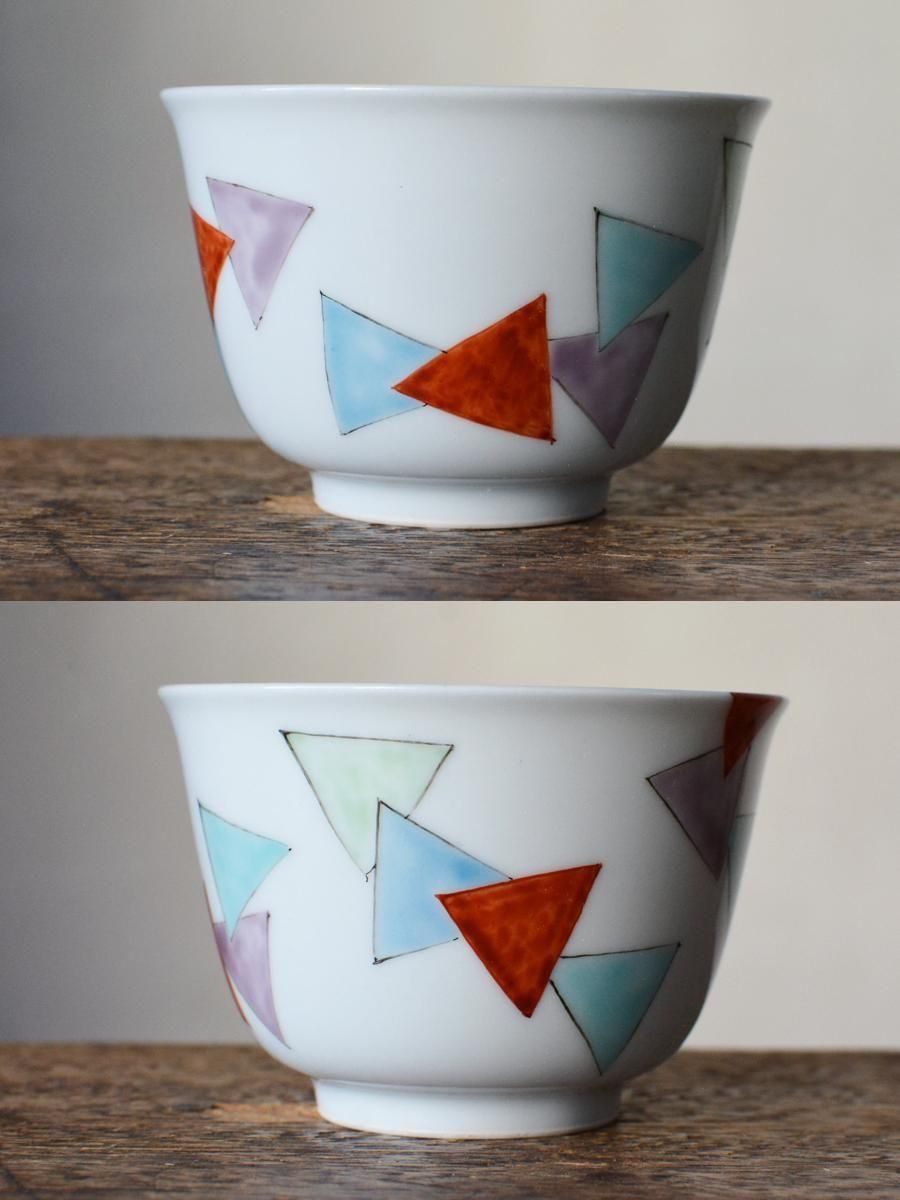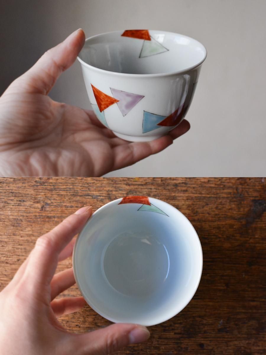 京焼 五色三角模様 煎茶碗【D】