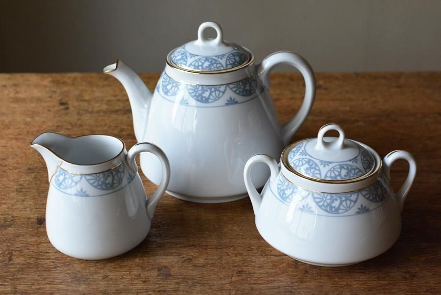 ティーポット・シュガーポット・ミルクピッチャーの3点セットです。