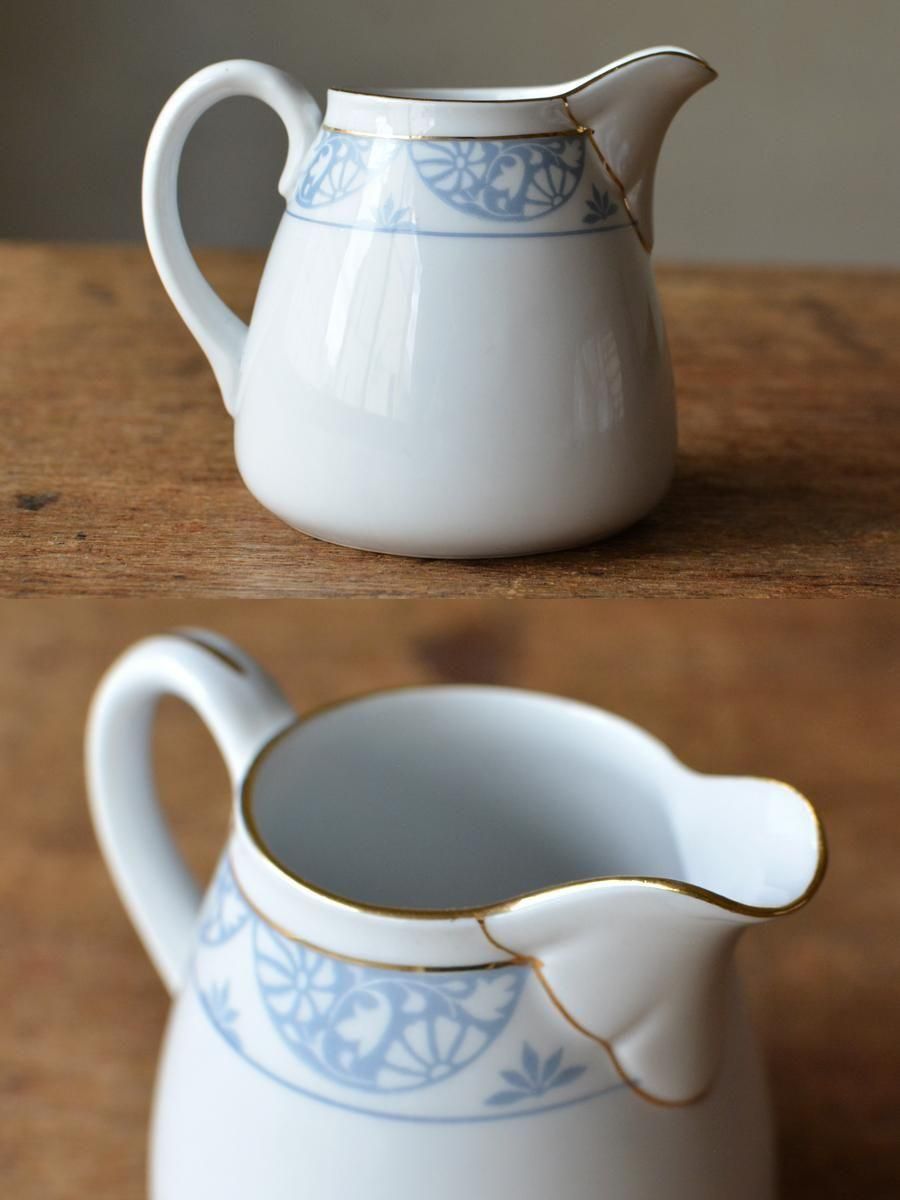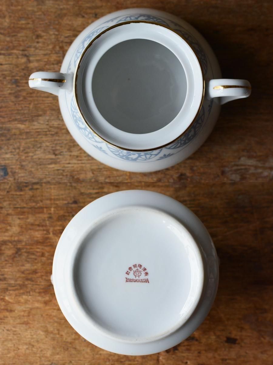 菊花がレースのように美しく配置された東洋陶器會社製のティーセット。
