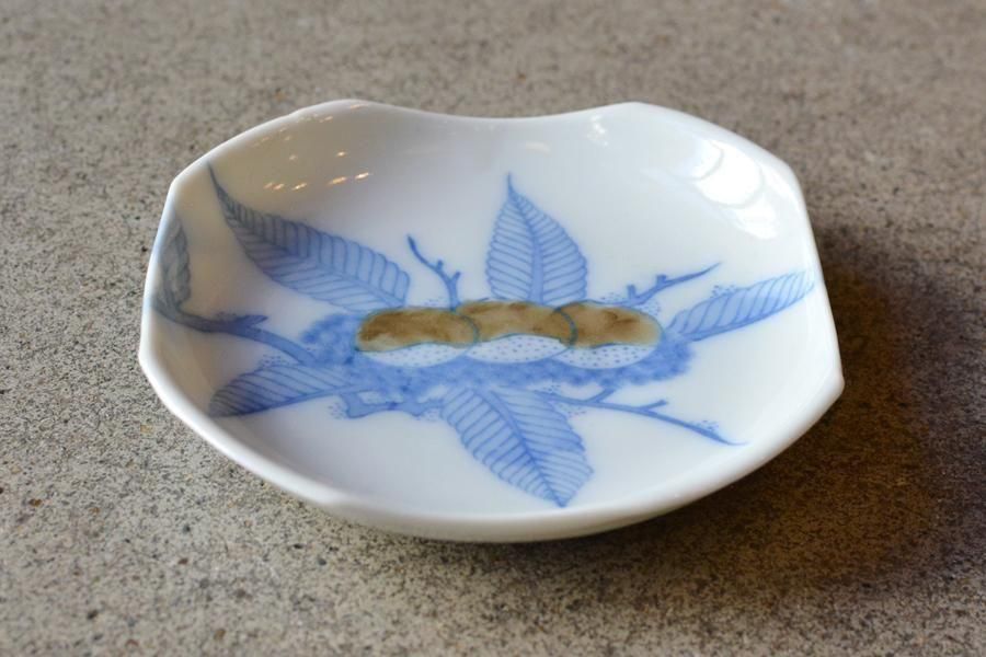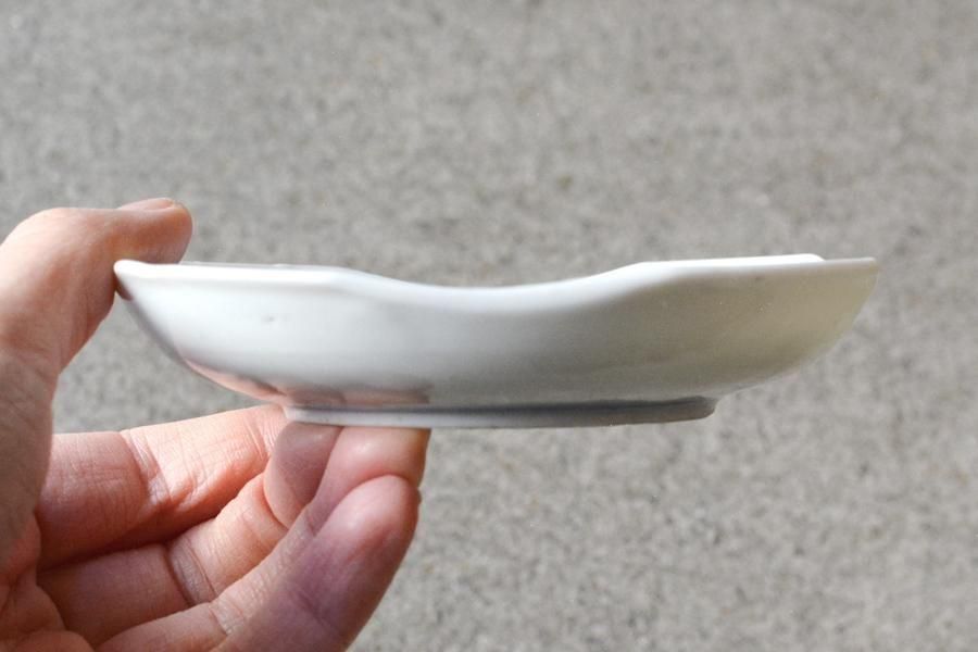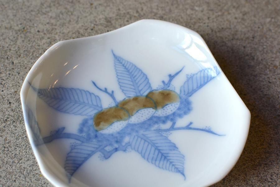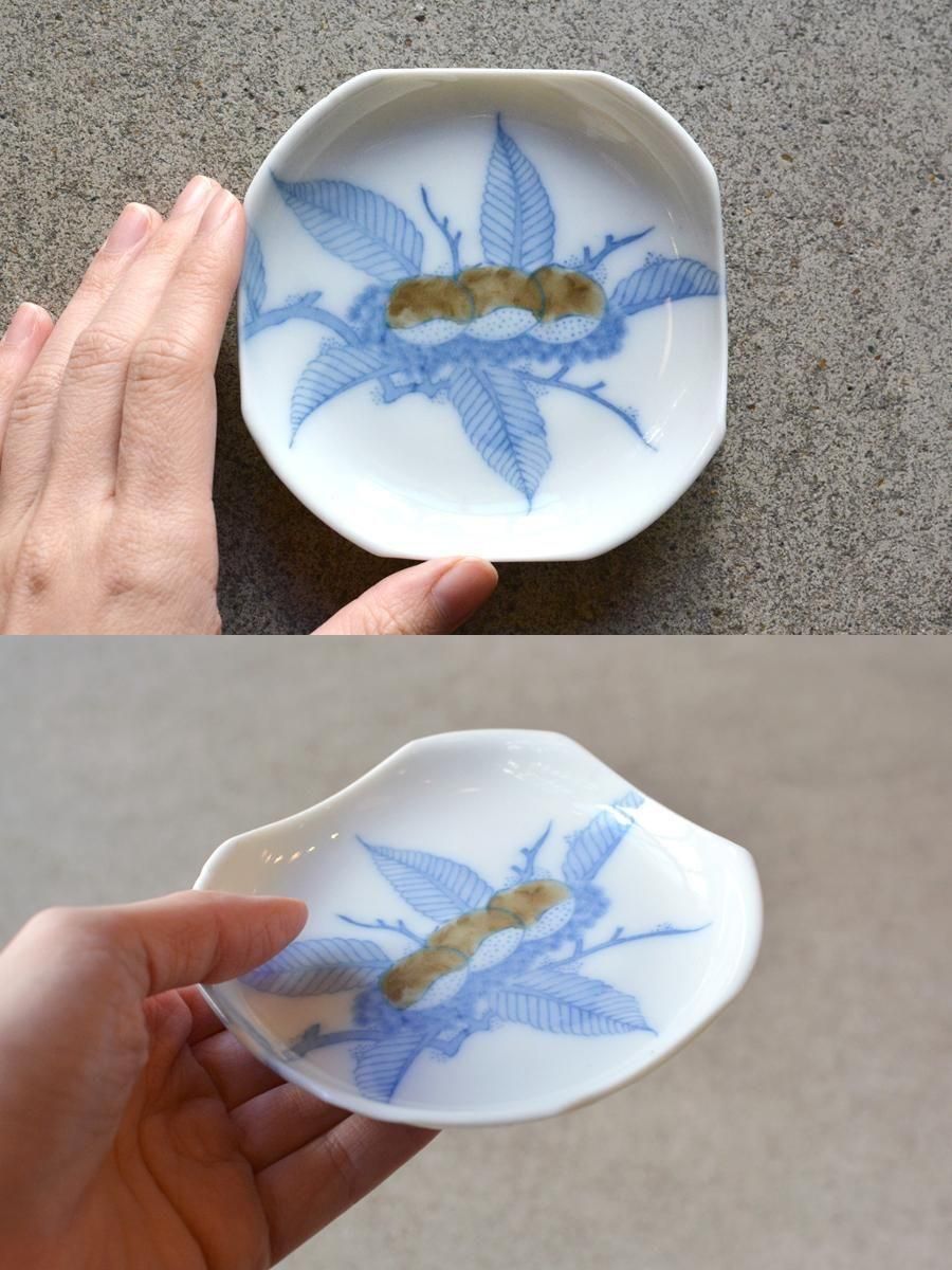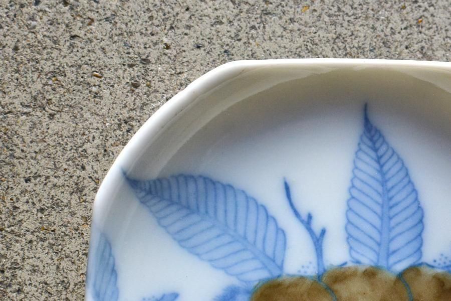 また印判は丸皿が多いなか、こちらは隅切りの角皿で珍しいデザインです。