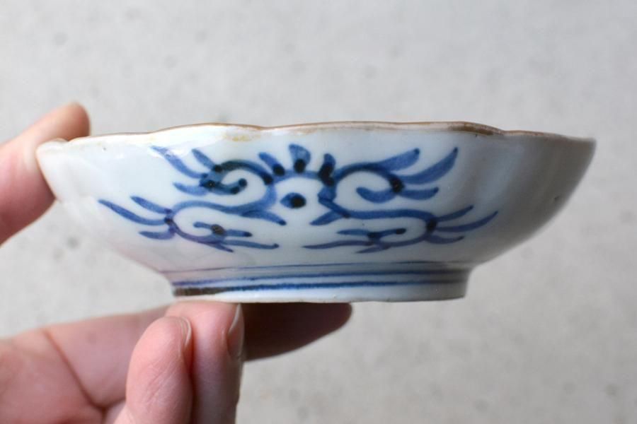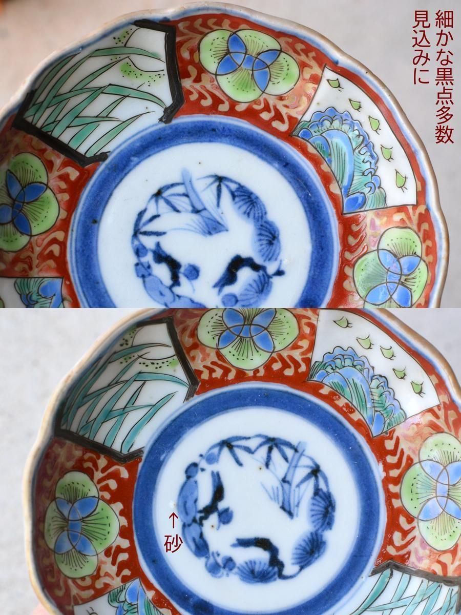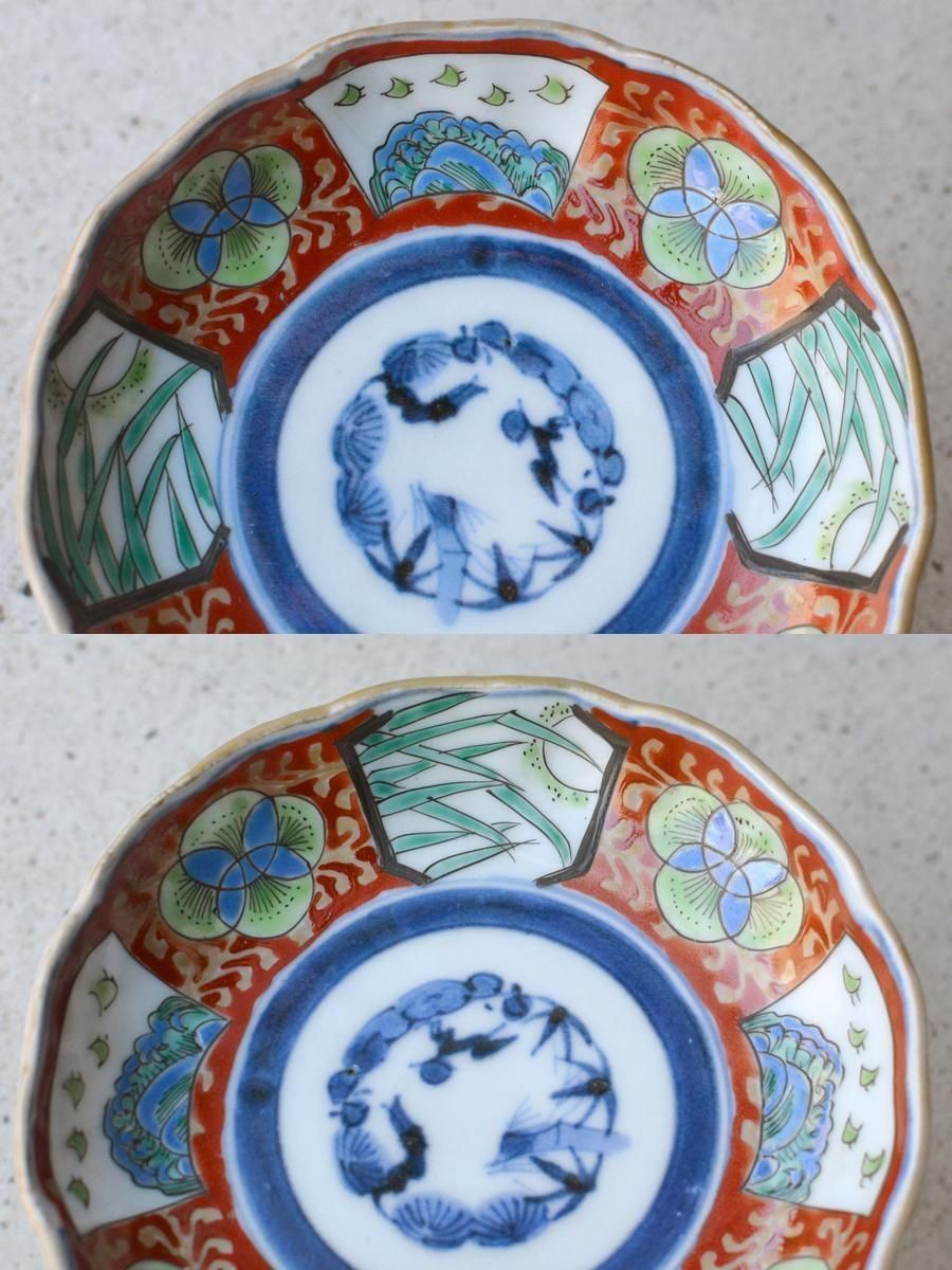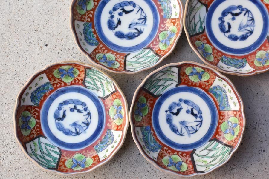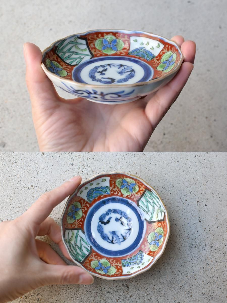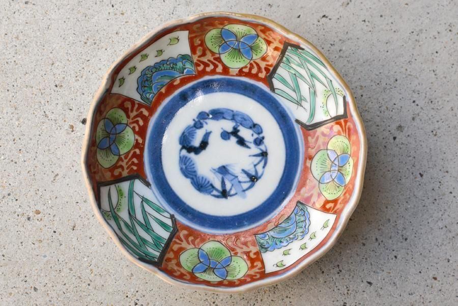 伊万里 色絵小皿 唐草に梅と波千鳥