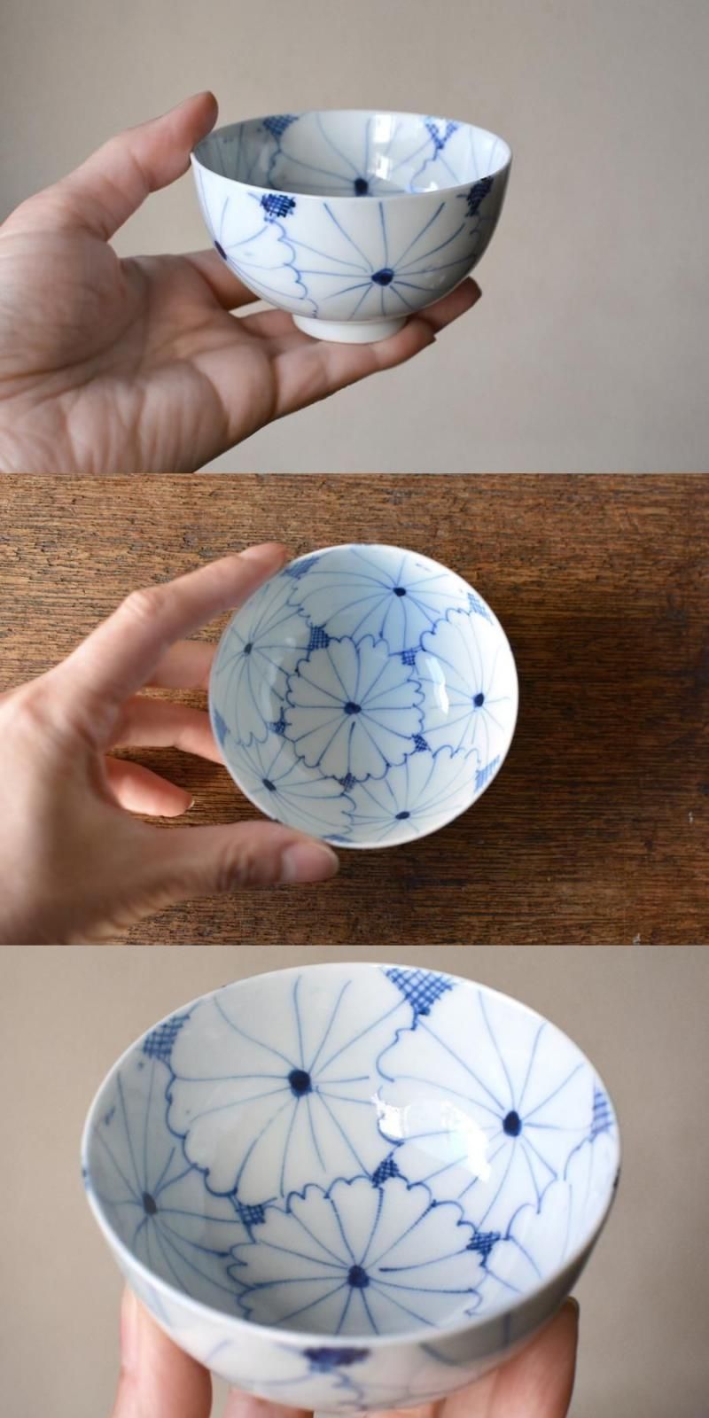 内外どちらにも線描きの菊花がびっしりと描かれています。